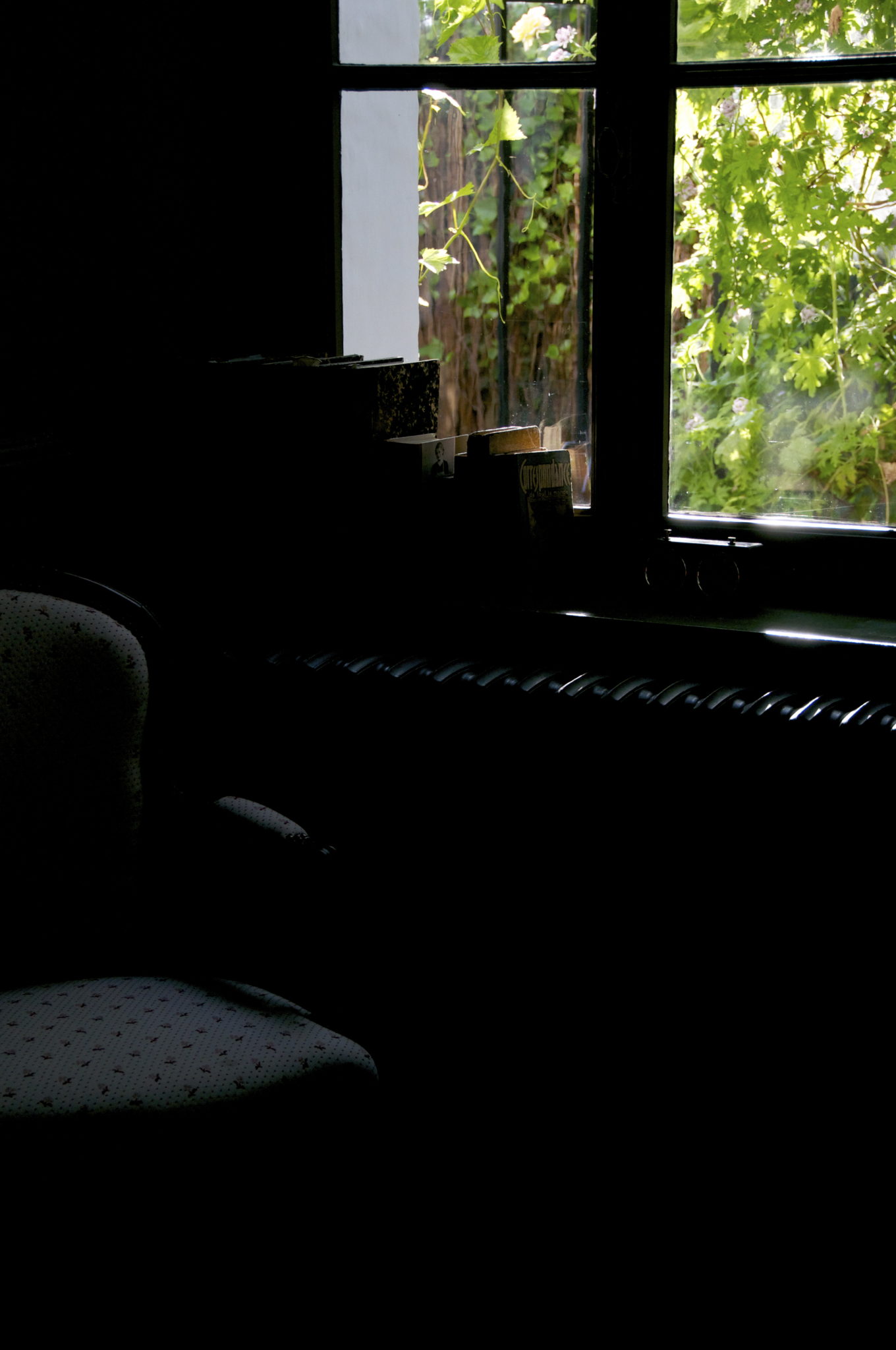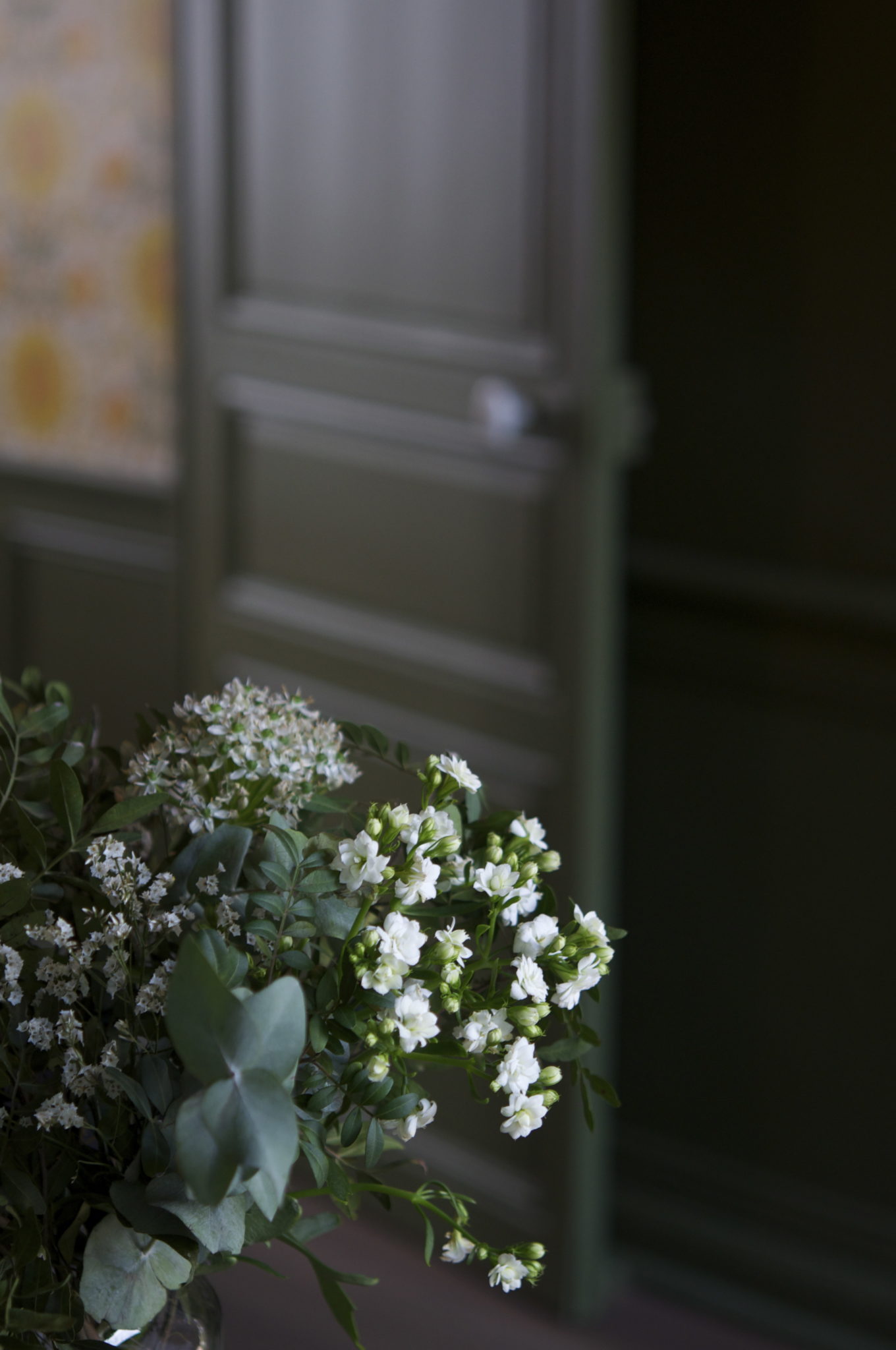 A l’étage, les chambres sont desservies par un couloir baigné de lumière et de jeux d’ombres qu’anime aux beaux jours la glycine longeant la façade. Dans la chambre couchette, l’une des quatre chambres de circonstance, siège la réédition d’une baignoire ancienne entre le boudoir et le lit lové dans une alcôve peinte en jaune brillant.