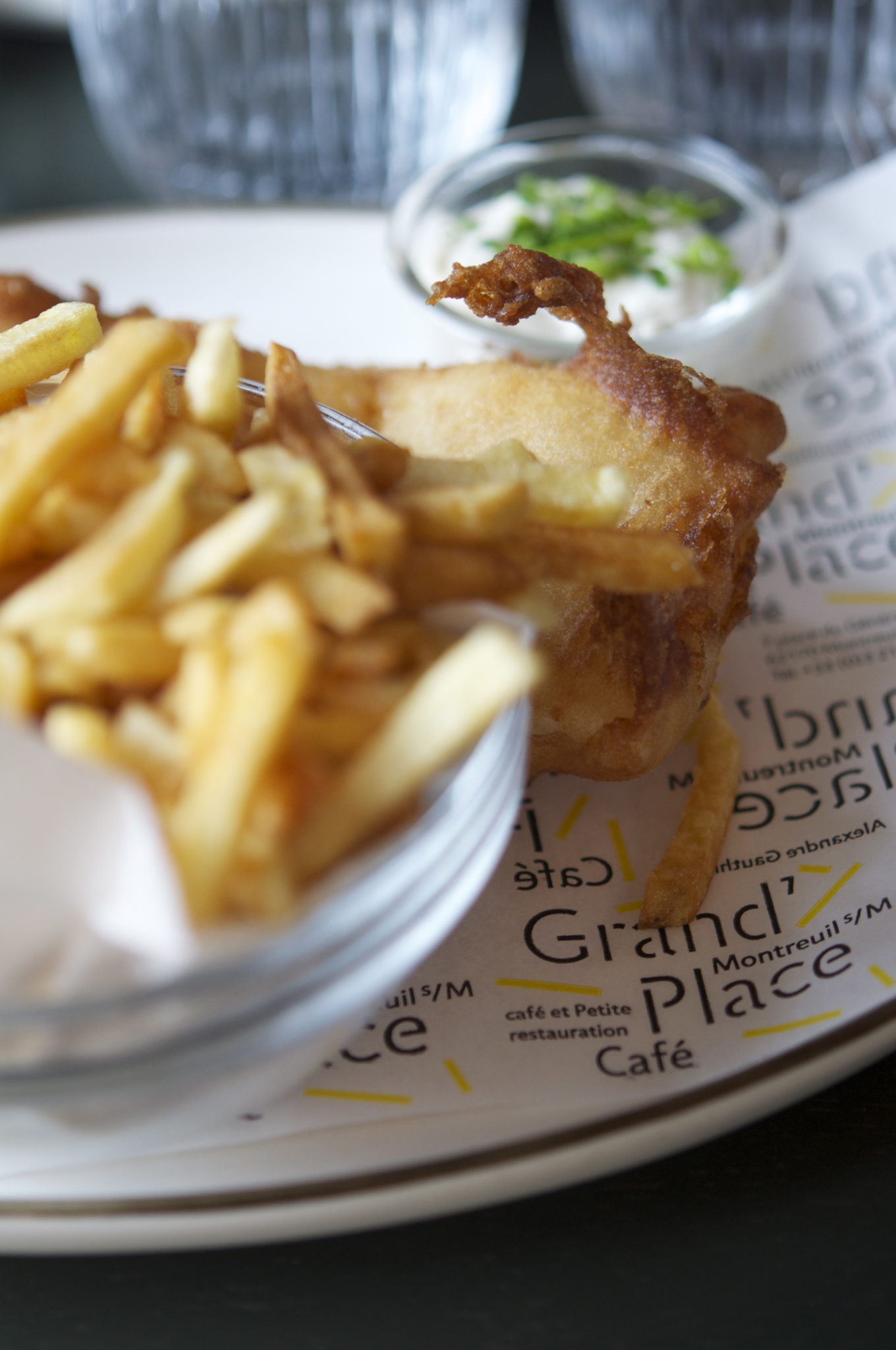 Sur la même place du Général de Gaulle, vous ne pourrez manquer l’adresse « bistrotière » d’Alexandre Gauthier à sa devanture noir mat et ses chaises jaune poussin en terrasse. Au Grand’Place Café la devise « Café quotidien, petite restauration et semainier de plat ouvriers. » donne le ton ! Ainsi que la décoration tout à trac : du plancher de l’appartement du dessus effondré laissant apparaître un vieux papier peint jusqu’aux aux murs grattés. À la carte, un fish & chips à faire pâlir d’envie les habitants d’Outre-Manche ; au semainier, un opulent vol-au-vent archi feuilleté vous invite à venir vous y attabler le jeudi ainsi qu’un plaisant cordon bleu et coquillettes le samedi…