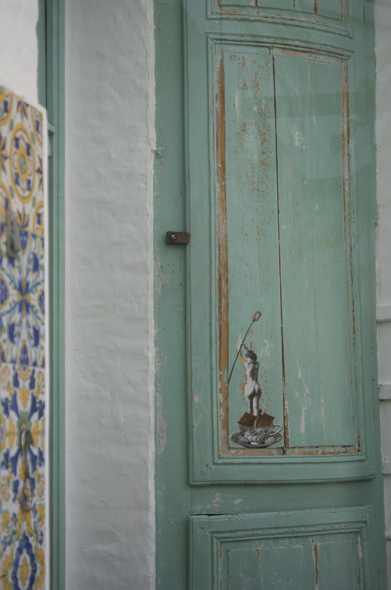 Disséminés dans de nombreux recoins de PieuX, les collages au charme suranné et à l’humour décalé de l’artiste graphiste Mélanie Busnel renvoient au passé de la rue des Etuves, où les prostituées ont longtemps travaillé.