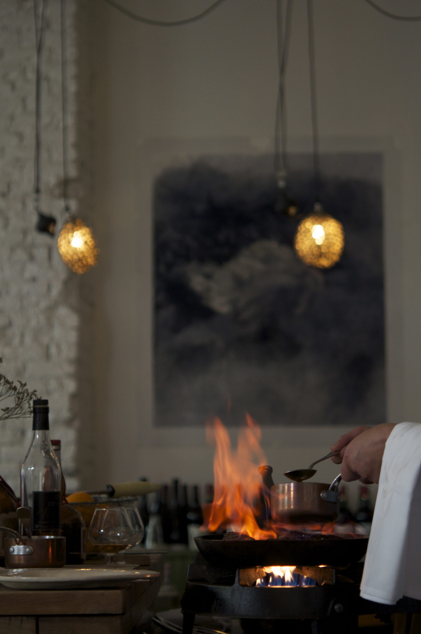 Non loin de l'abbatiale Saint-Saulve construite au XIIe siècle, c’est entre les murs de l’ancien Hôtel Dieu, à L’Anecdote, qu’Alexandre Gautier rend hommage à la cuisine de son père Roland lorsqu’il ouvrit La Grenouillère en mars 1979, y faisant revivre ces recettes oubliées nous assurant des moments d’ivresse, où l’amour à longs flots nous verse le bonheur*. Une cuisine de mémoire où au menu ce jour-là en entrée, le haddock fumé nageait dans un orgasmique velouté d’asperges blanches.